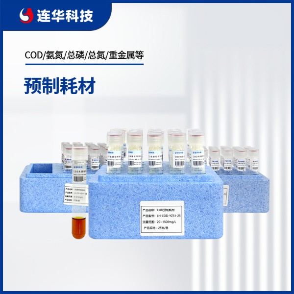 連華科技預制試劑覆蓋COD(0.7-15000mg/L,抗氯20000mg/L)、氨氮(0-150mg/L)、總磷(0-100mg/L)、總氮(0-150mg/L)等主流檢測指標,規格包含25/50/100樣,滿足不同場景需求,可無縫替代進口試劑,在性能與成本上均具備顯著優勢。