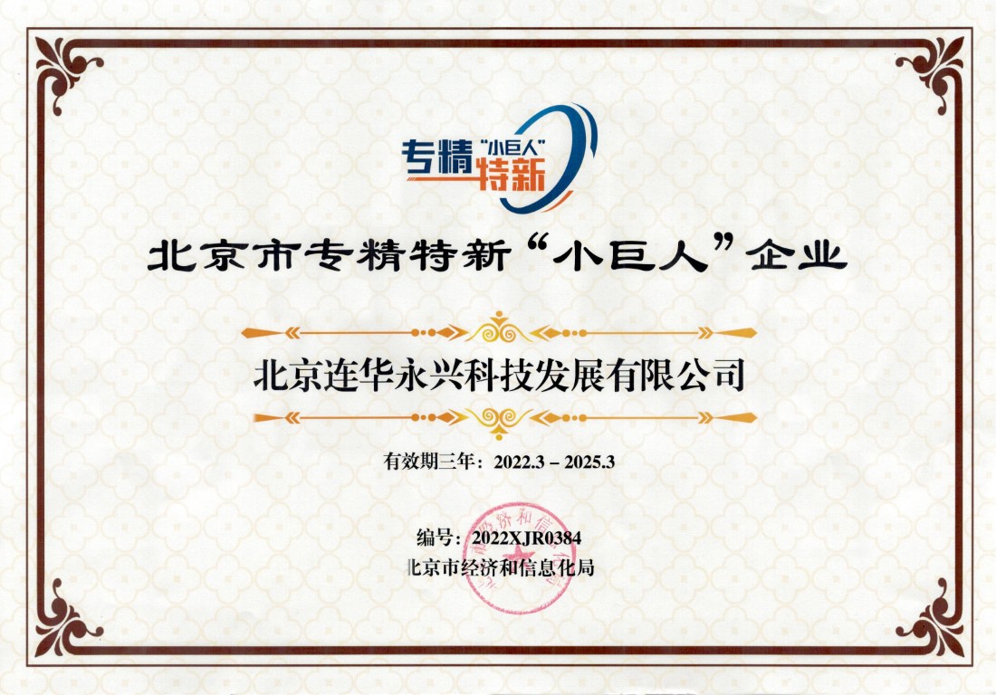 2022年| 榮獲北京市專精特新“小巨人”企業(yè)榮譽(yù) |